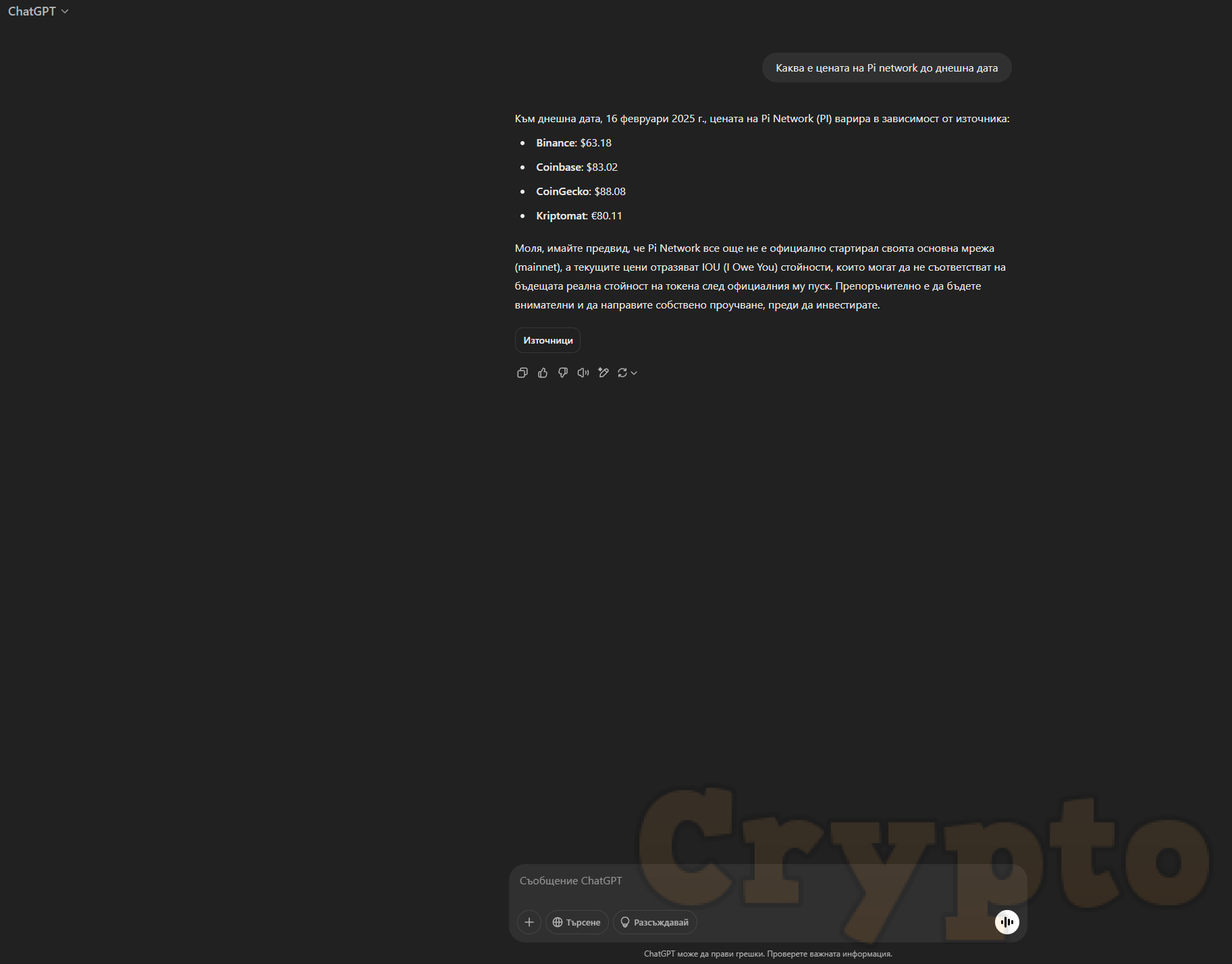 Според ChatGPT цената на Pi Network e това